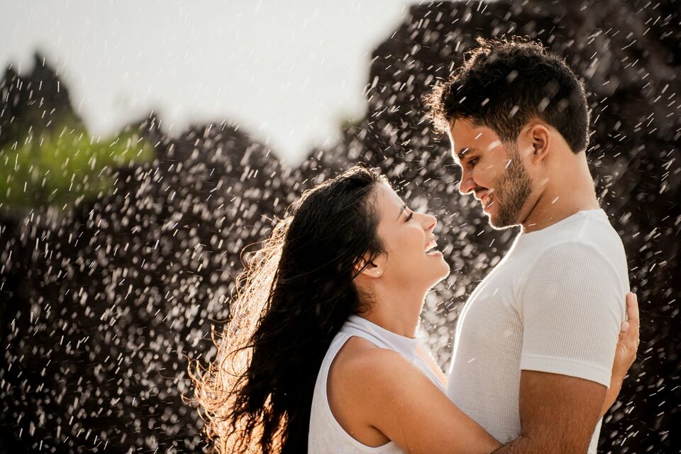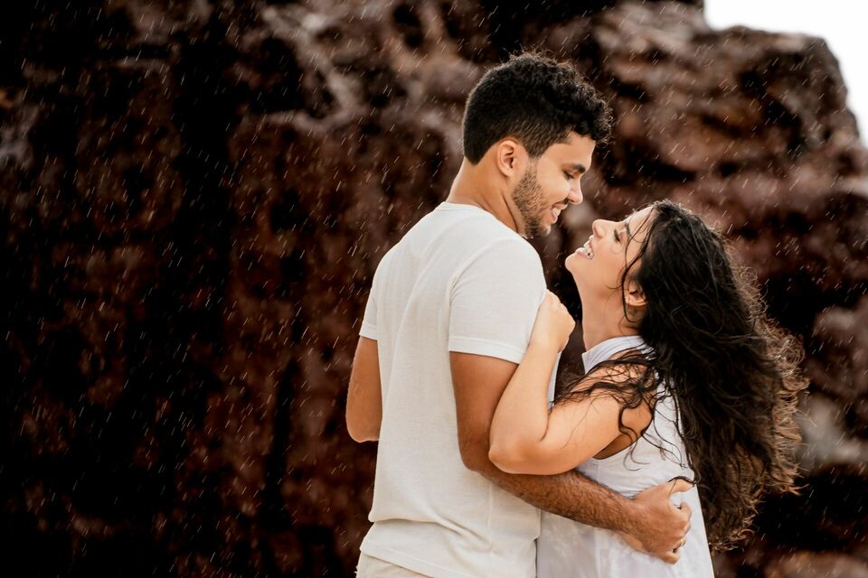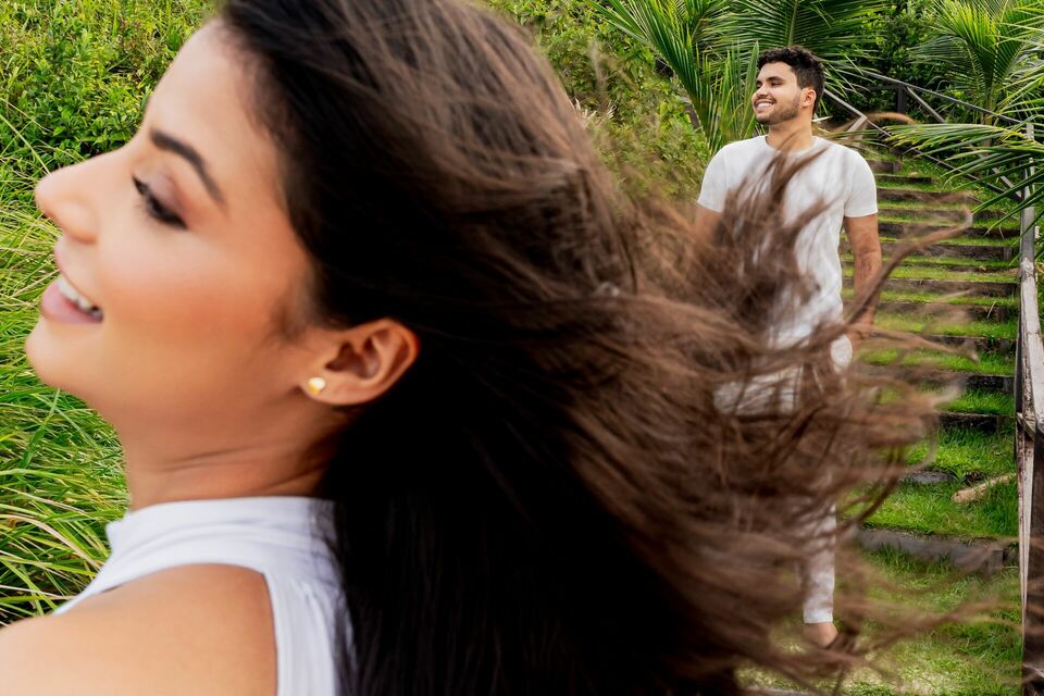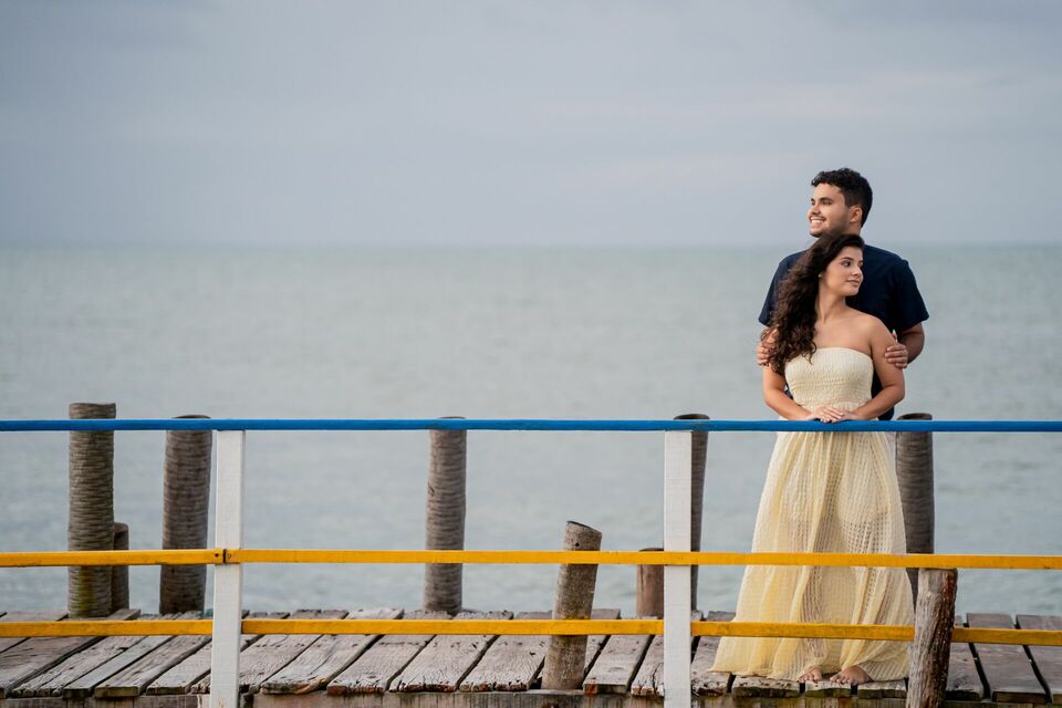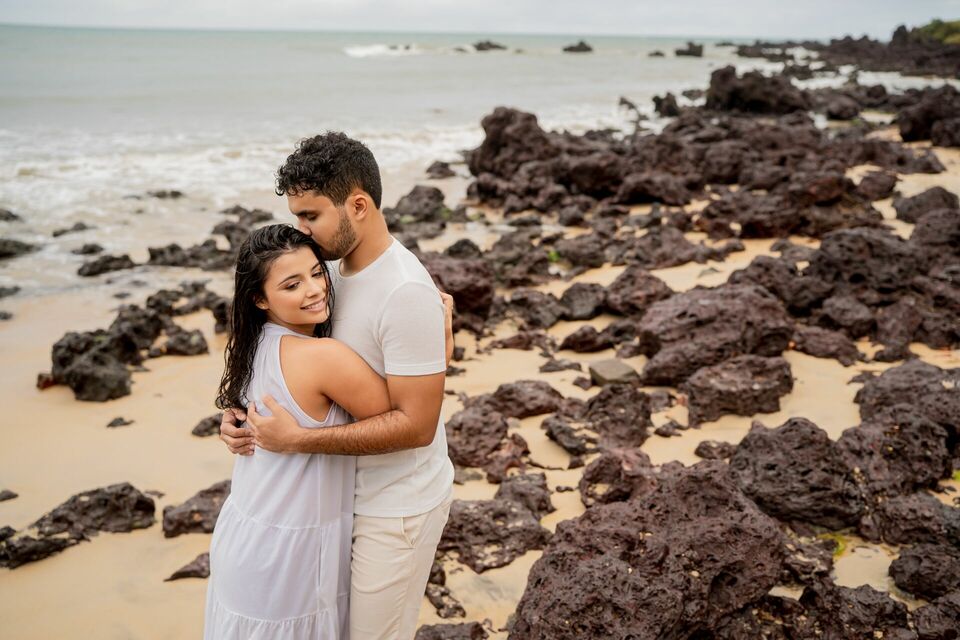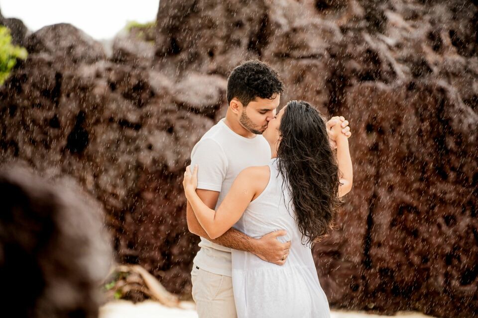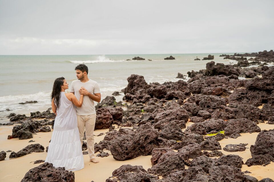 O som das ondas, a brisa do litoral potiguar e até as gotas da chuva criaram um clima especial, tornando cada momento ainda mais autêntico. Entre risadas, olhares cúmplices e pequenos gestos de carinho, cada clique capturou a essência da relação: um amor sereno, alegre e cheio de cumplicidade.