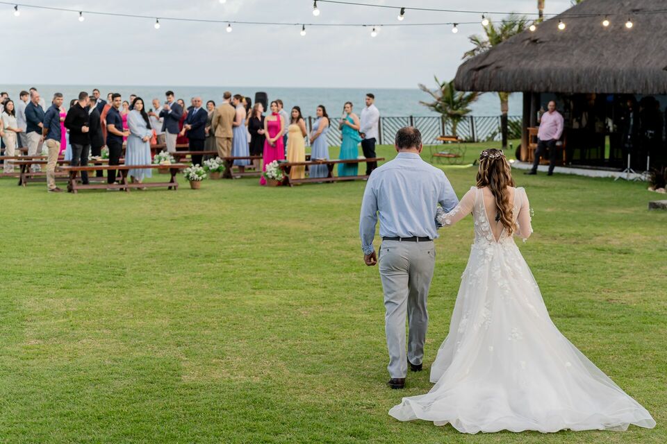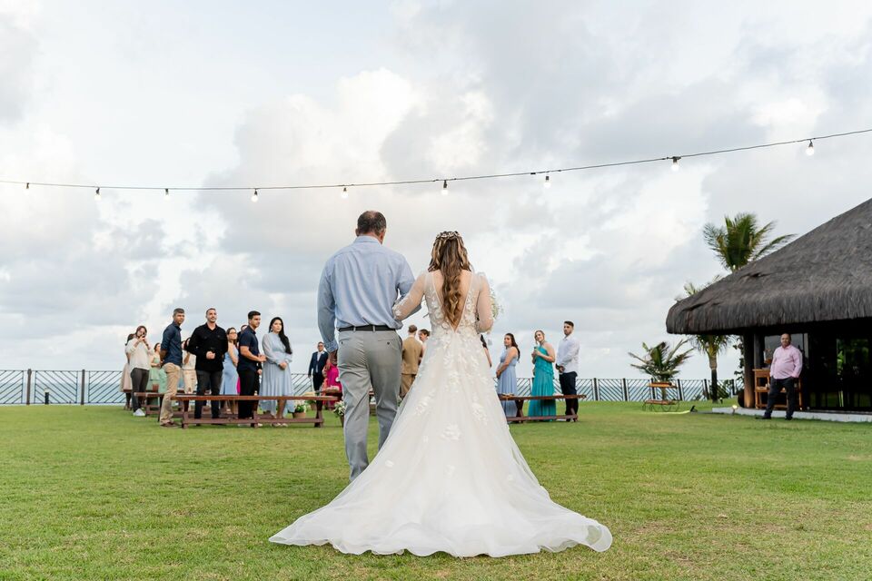 Ela, americana. Ele, brasileiro. Dois caminhos diferentes que se encontraram para construir uma história só, marcada por afeto, simplicidade e verdade. A luz do fim de tarde, a brisa do mar e a emoção do momento criaram o cenário ideal para um casamento vivido com o coração aberto.
