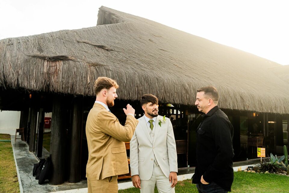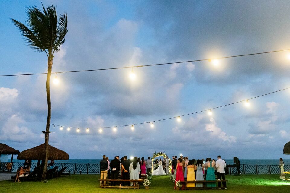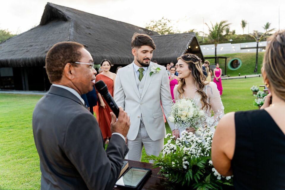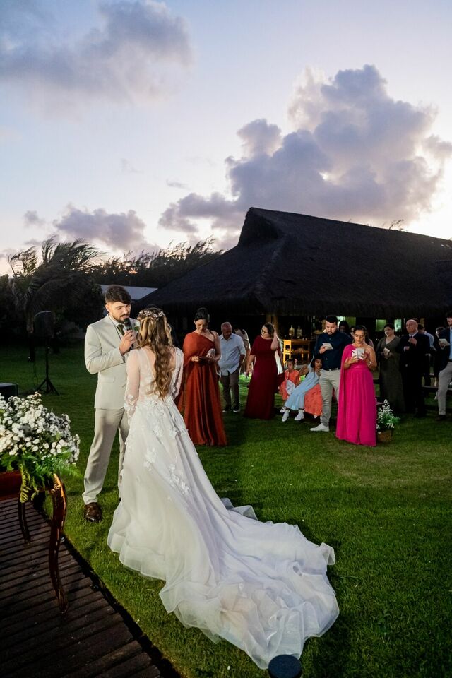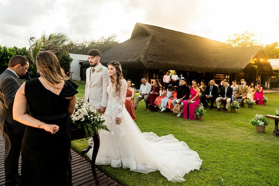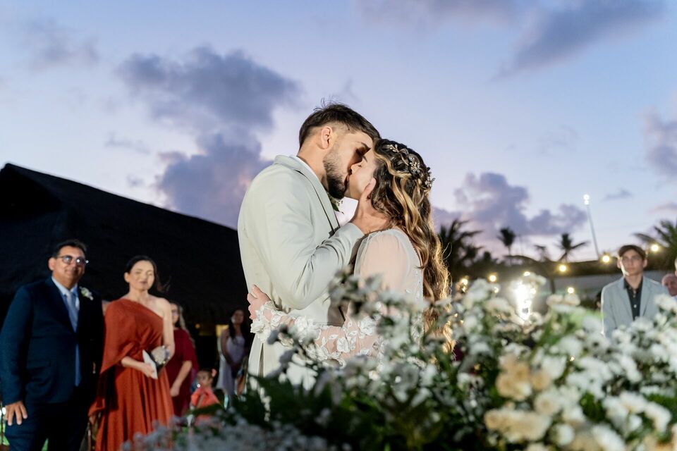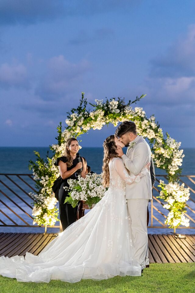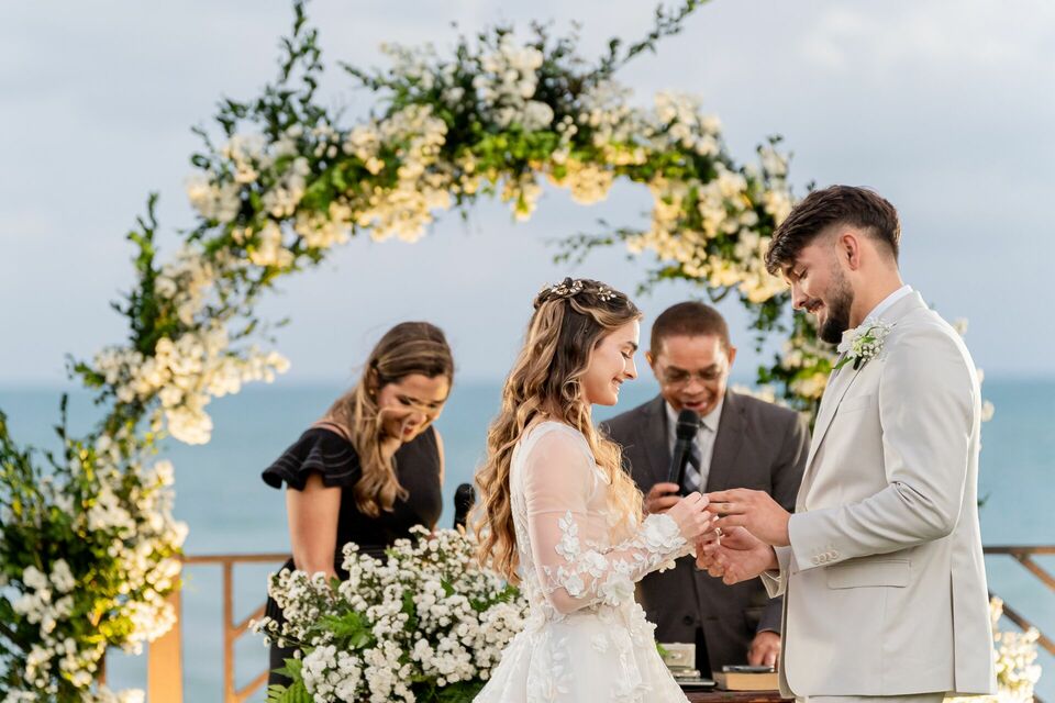 Ao final da tarde, com o mar da Via Costeira como testemunha, eles disseram “sim” em frente ao Wish Natal, em uma celebração íntima, leve e cheia de significado.