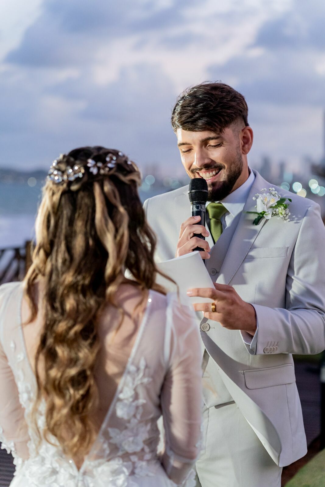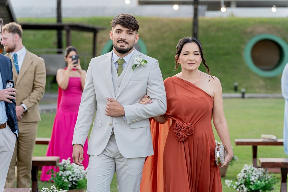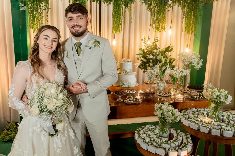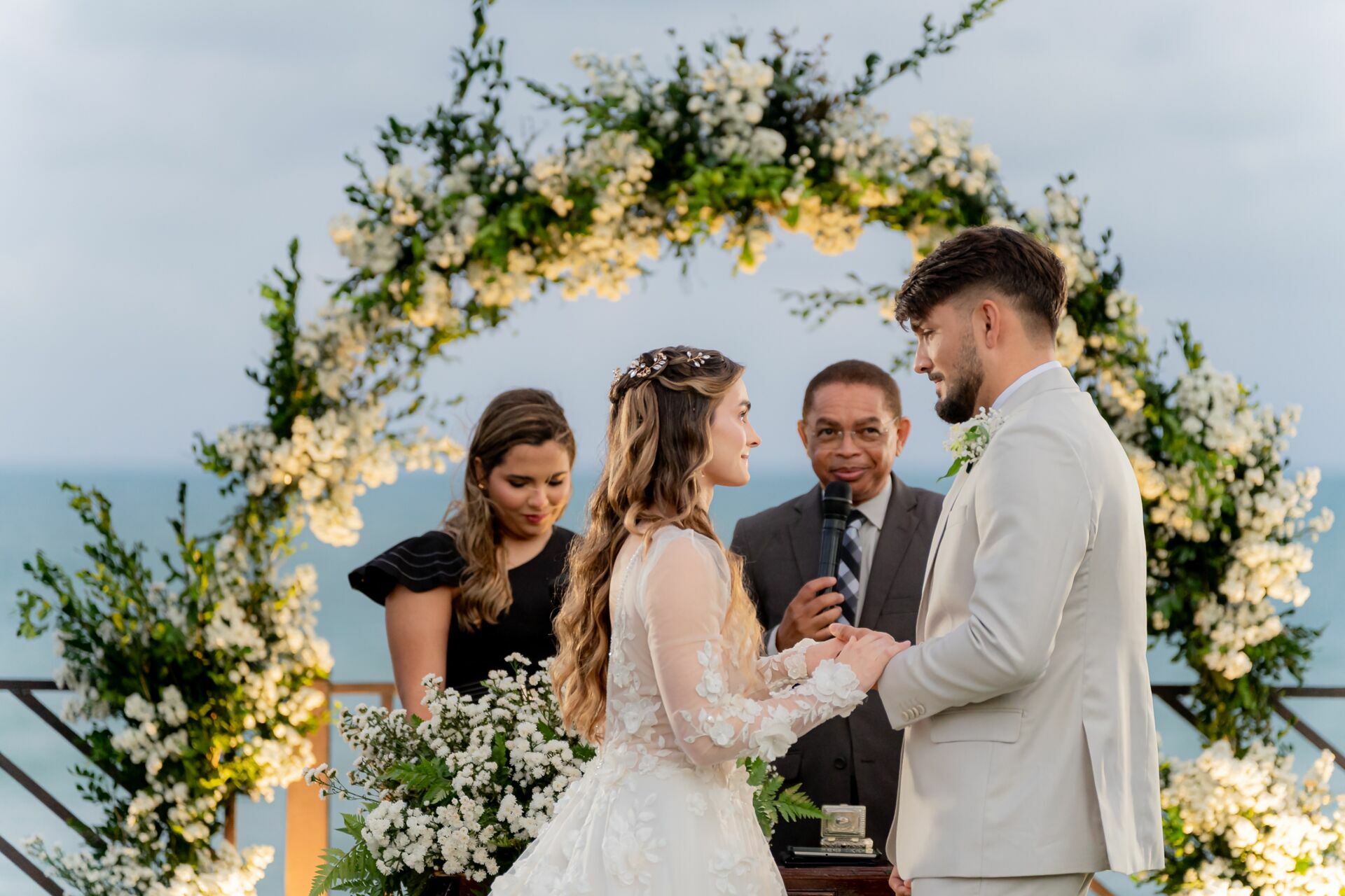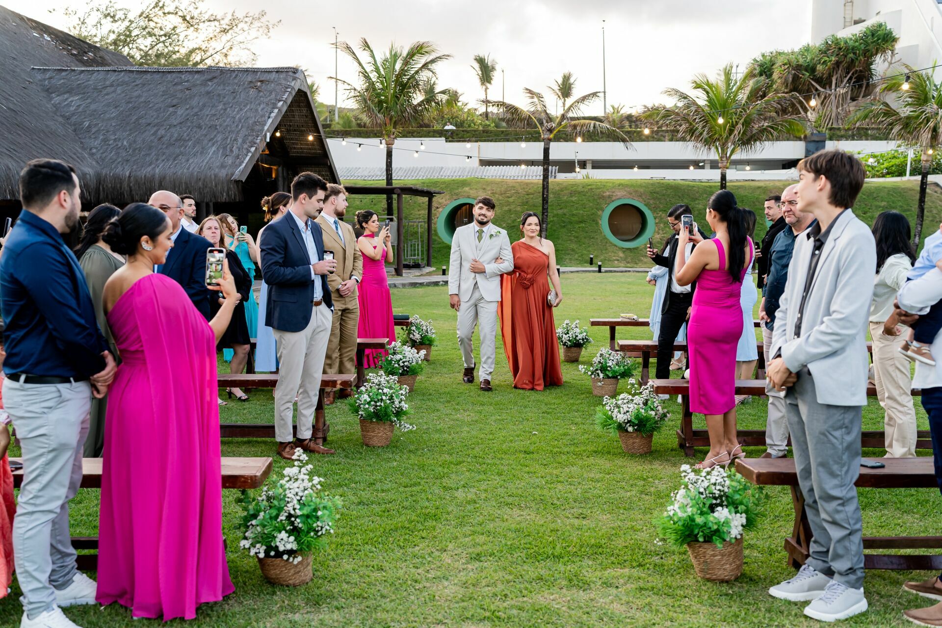Ao final da tarde, com o mar da Via Costeira como testemunha, eles disseram “sim” em frente ao Wish Natal, em uma celebração íntima, leve e cheia de significado.