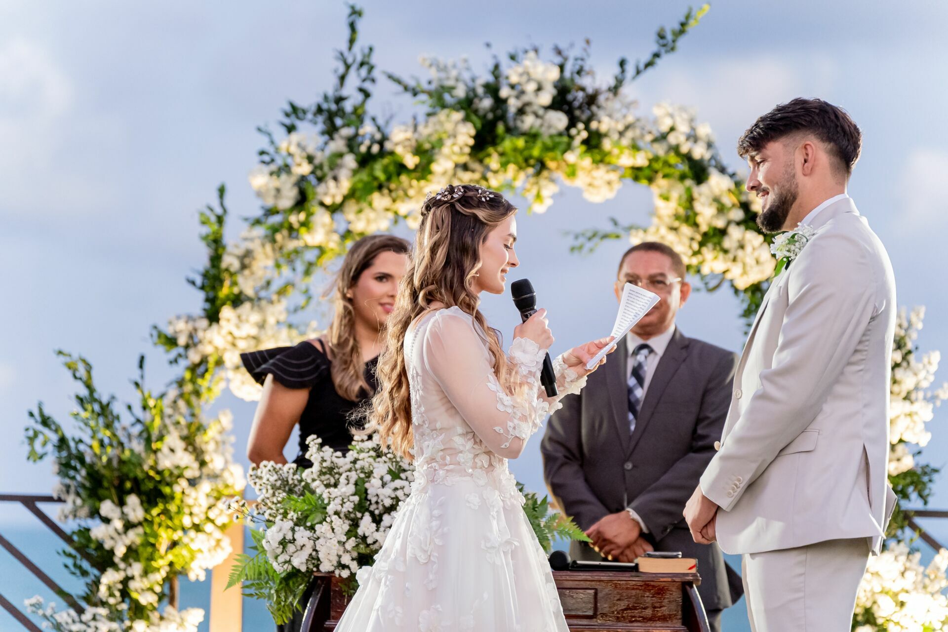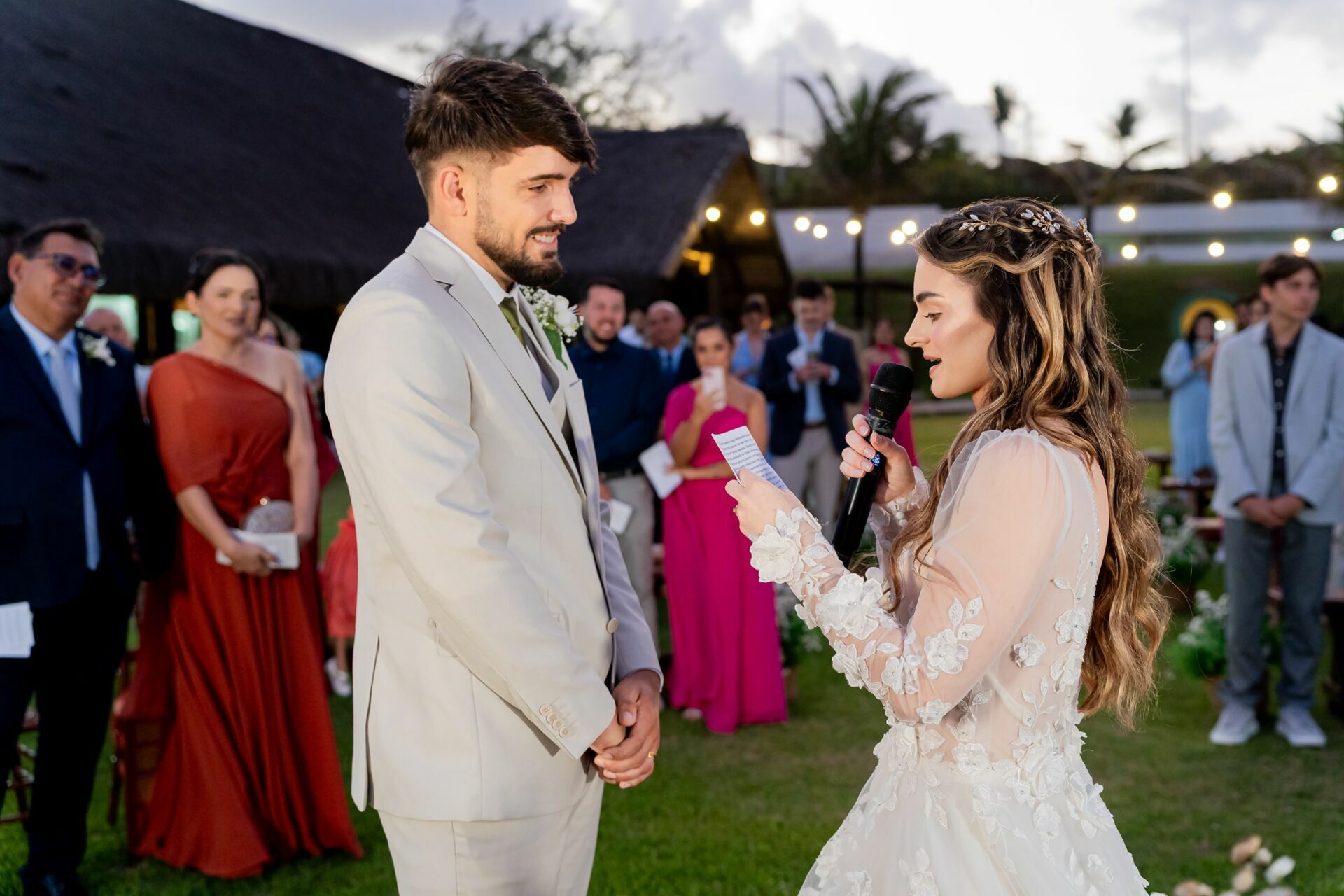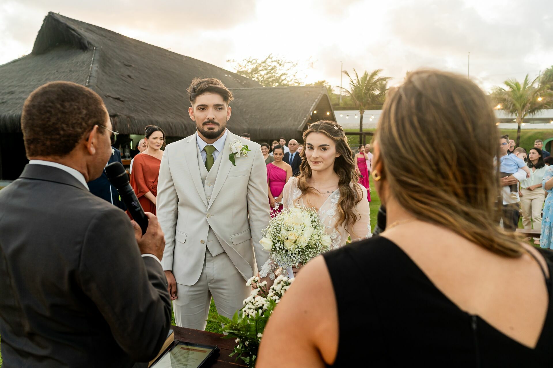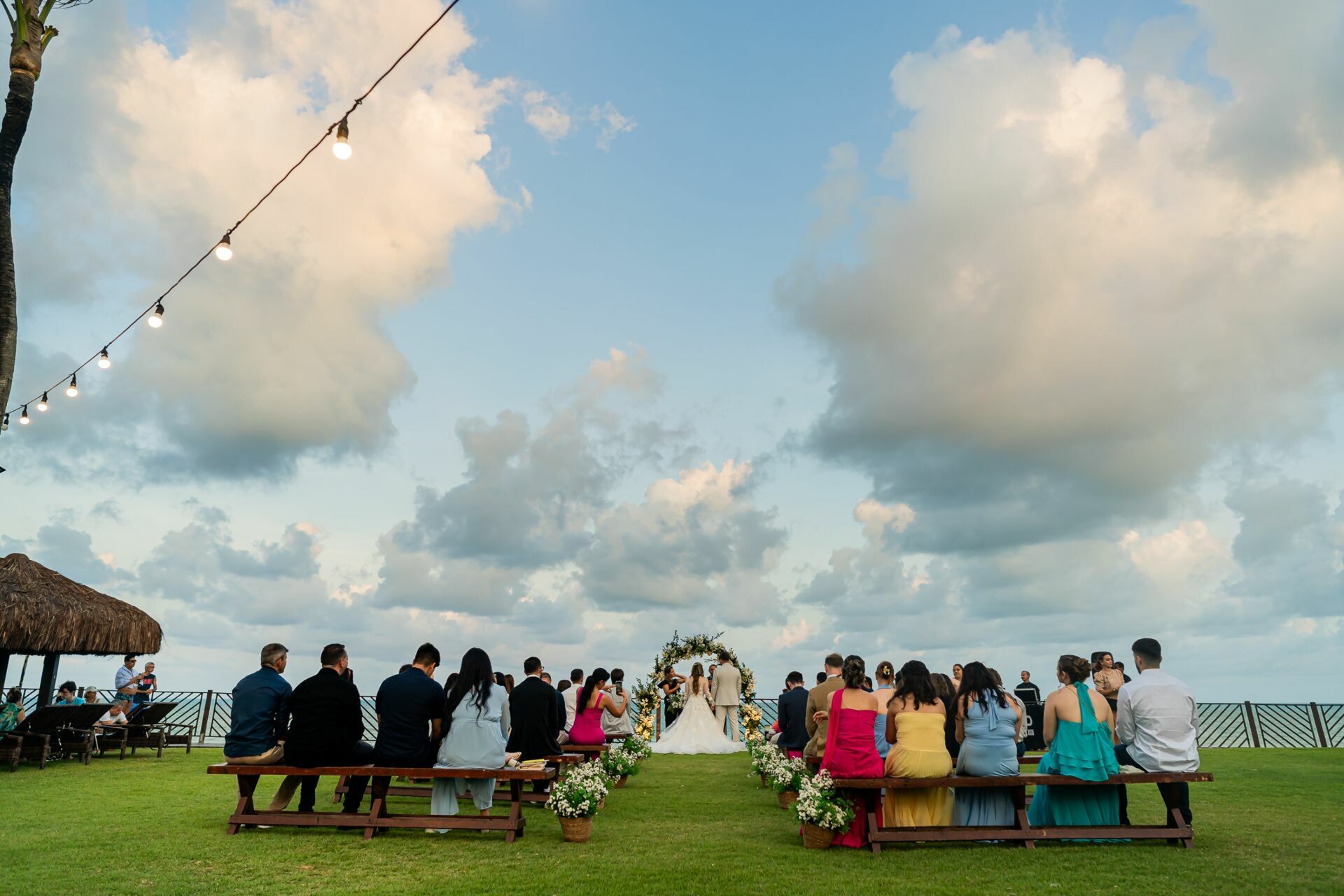 Ao final da tarde, com o mar da Via Costeira como testemunha, eles disseram “sim” em frente ao Wish Natal, em uma celebração íntima, leve e cheia de significado.