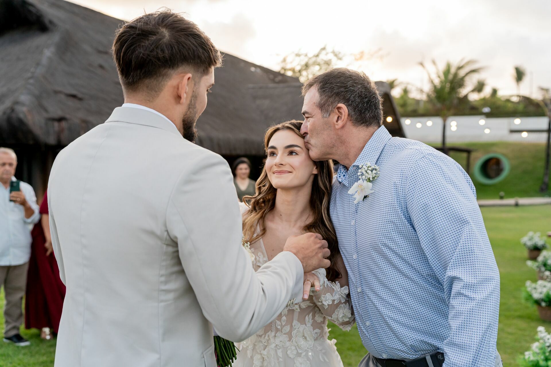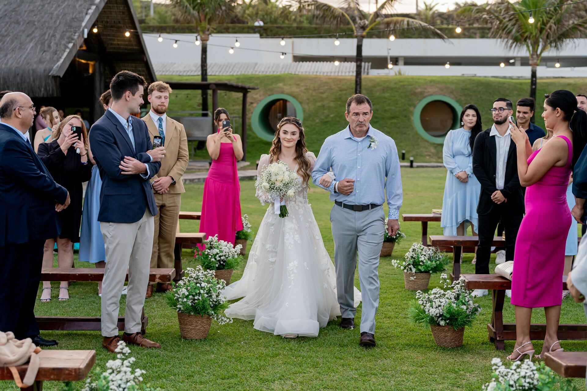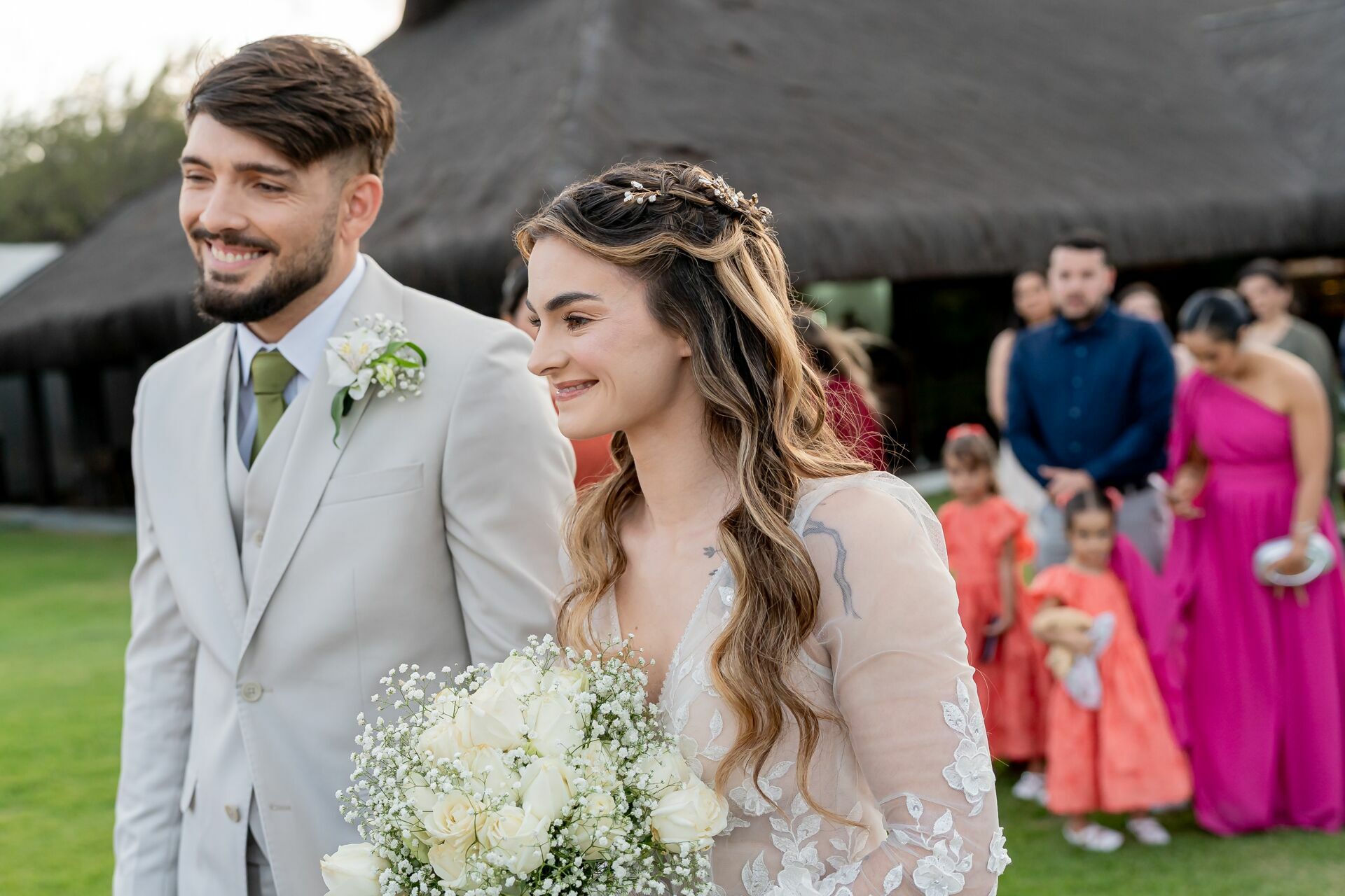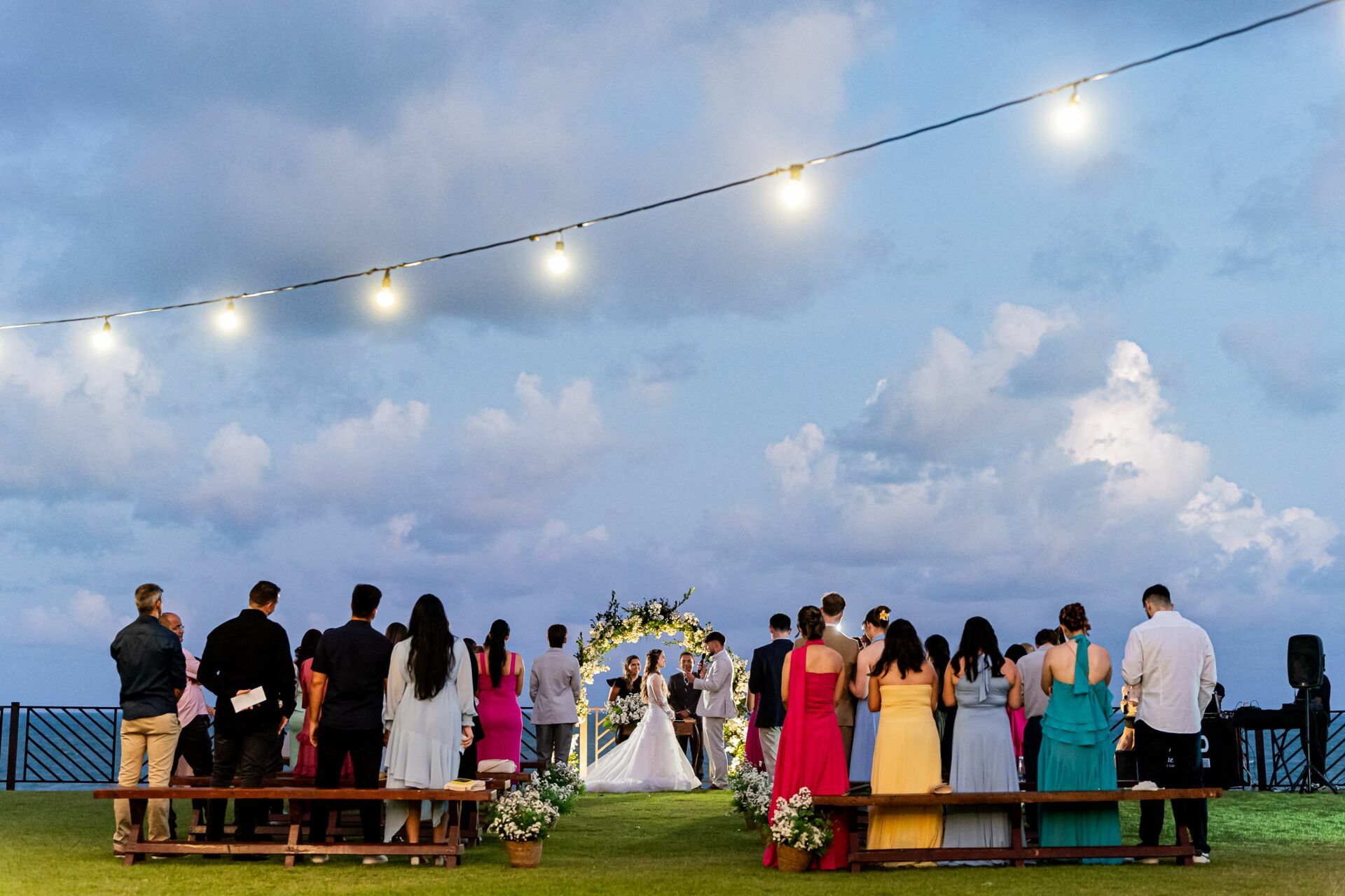 Ao final da tarde, com o mar da Via Costeira como testemunha, eles disseram “sim” em frente ao Wish Natal, em uma celebração íntima, leve e cheia de significado.