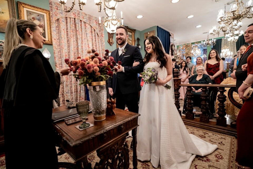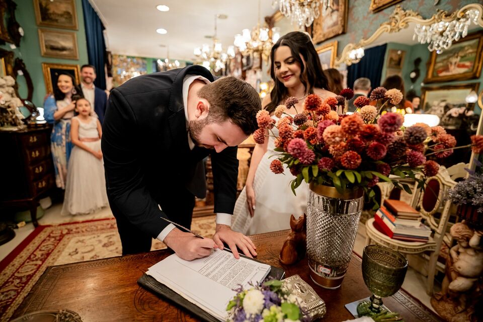 O casamento civil de Ingrid e André foi leve, singelo e profundamente emocionante. A cerimônia aconteceu no 4º Ofício de Natal e a Arttefatto, uma loja de antiguidades que trouxe ainda mais charme e personalidade às imagens. Entre objetos cheios de história e uma atmosfera acolhedora, Ingrid e André viveram esse dia com delicadeza, conexão e emoção genuína, em um momento íntimo, cheio de significado e verdade, onde o essencial falou mais alto.