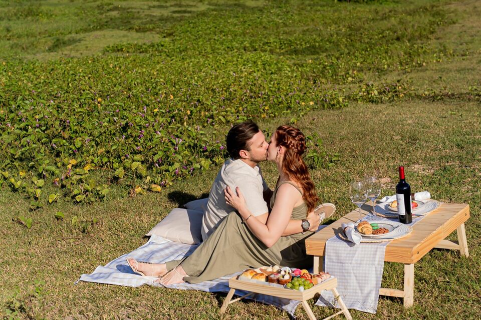 Para tornar esse dia ainda mais especial, eles prepararam um piquenique ao ar livre. Entre toalhas estendidas na grama, cestas cheias de cores e sabores e um clima leve de fim de tarde, registramos momentos de riso, troca de olhares e pequenos gestos que traduzem a essência do casal. Cada clique foi uma mistura de cenário, personalidade e sentimento verdadeiro.